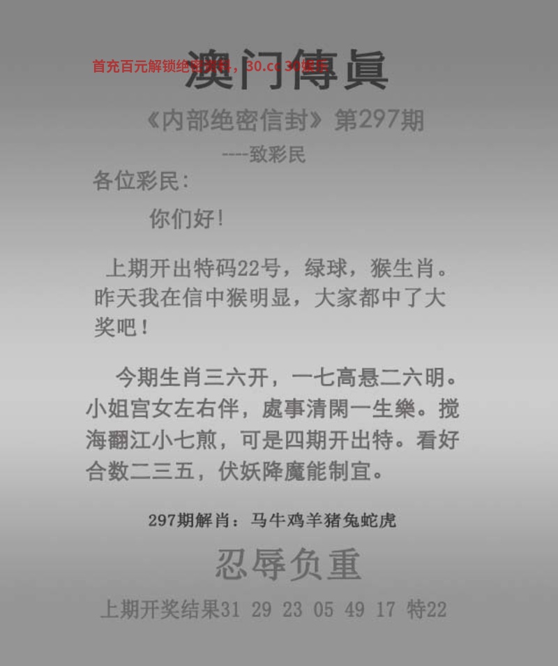 | 301期精准内幕【传真一头】赢钱料 |